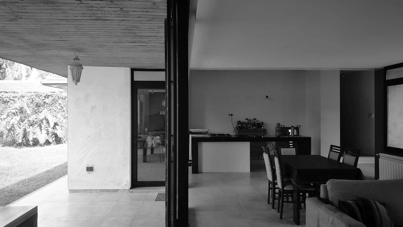 Dos losas de hormigón a la vista resuelven los espacios necesarios para la ampliación de la vivienda. En la parte posterior el estar-comedor con continuidad de un gran semi-cubierto y al frente el acceso con cochera. Refuncionalizamos la construcción en su totalidad así como conservamos las palmeras y arboles pre-existente .