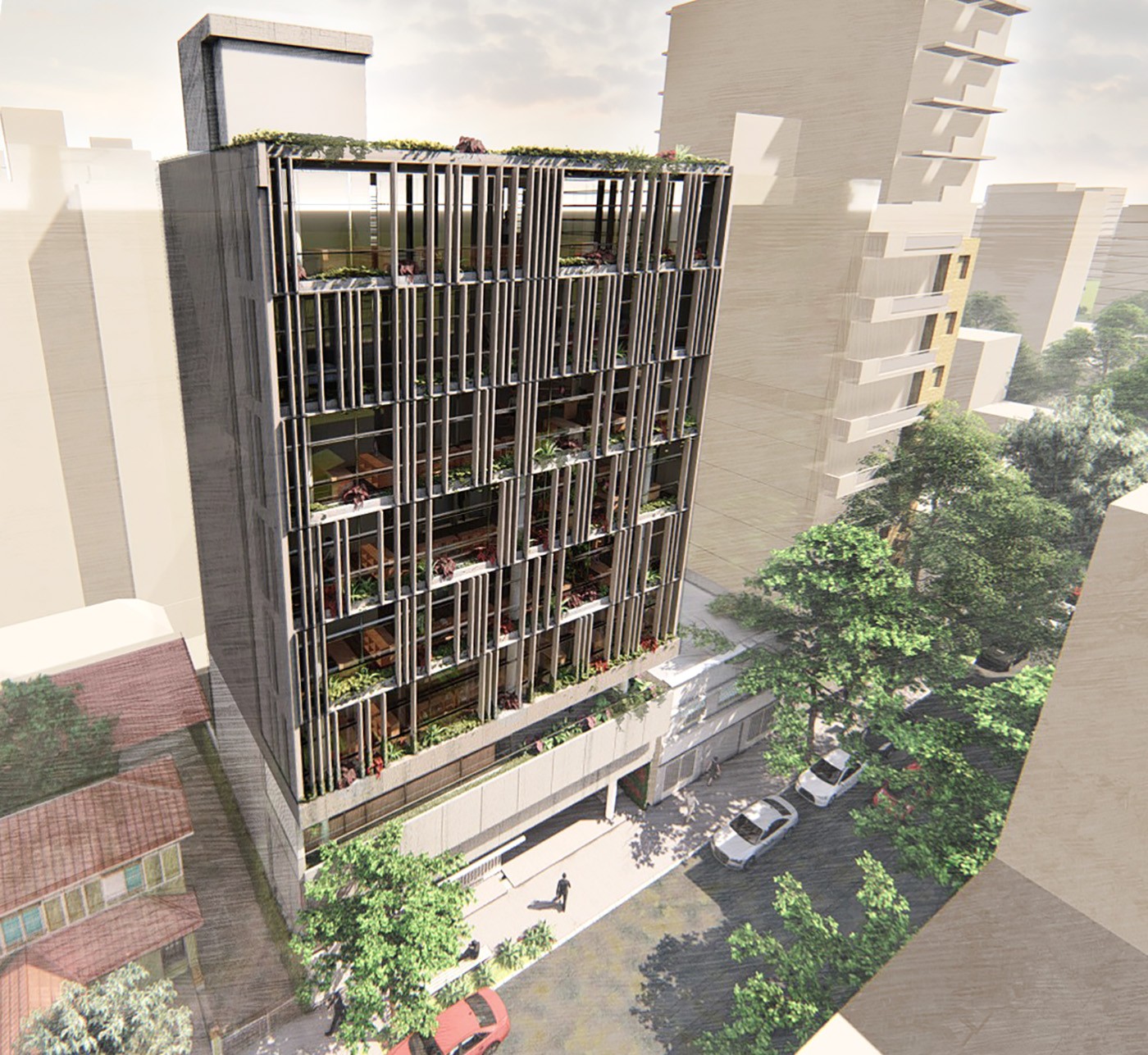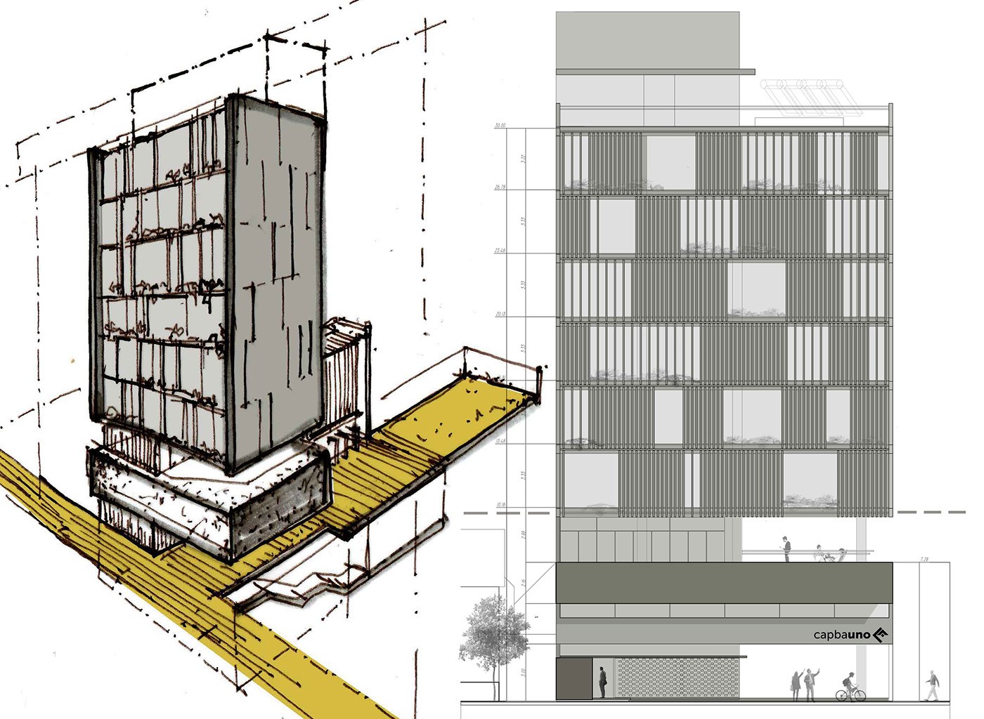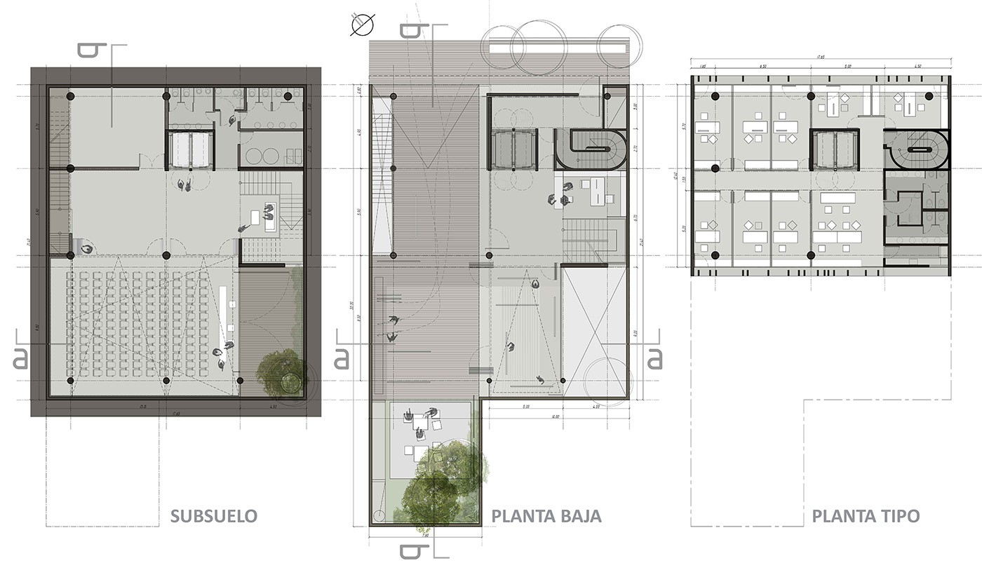El lugar de los arquitectos debe invitar. Proponemos generar una apertura del frente urbano hacia dentro del pequeño lote, donde todo se transforma en una plaza que se extiende por sus muros medianeros.Por encima aparece el día a día administrativo y por debajo se mezcla con las tardes culturales de contacto social.El volumen superior se genera con plantas flexibles, con múltiples posibilidades de armado, desde la colectividad absoluta a la privacidad de un dormitorio. La envolvente, se esfuerza para contener naturaleza, ser permeable y generar caras hacia todos lados.
