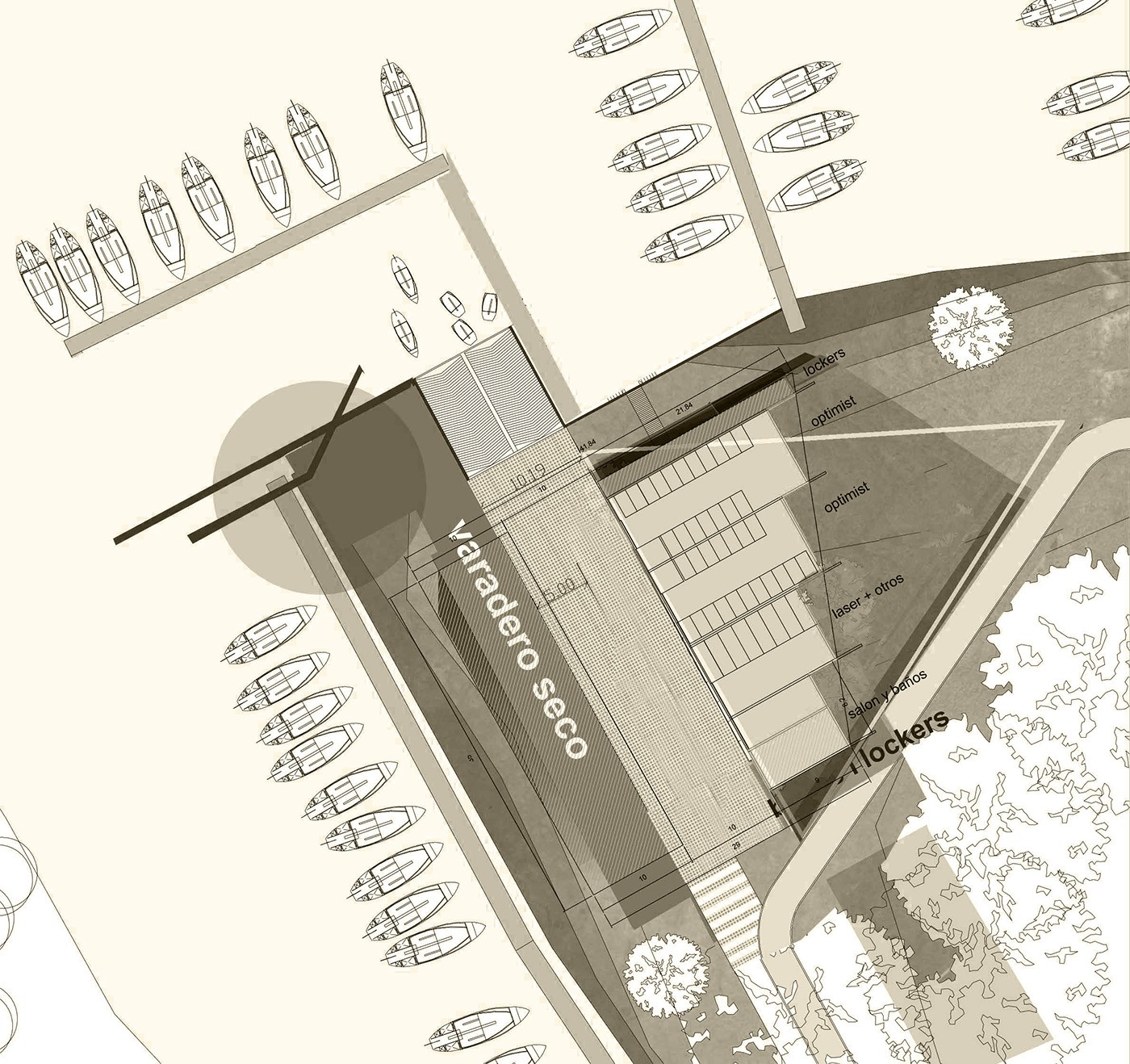 Con un movimiento de tierra proponemos mimetizar las necesidades programáticas con la condiciones vírgenes que le dan clima a la isla del Club.