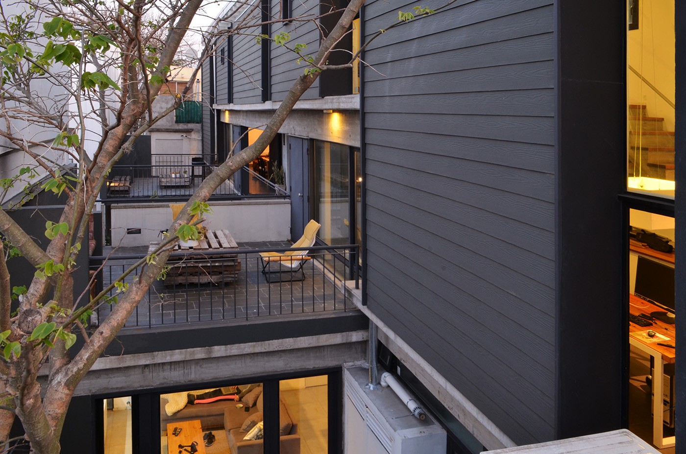 Sobre un lote de 24.8m x 8m de ancho proyectamos un conjunto de 4 viviendas con el desafío de proponer calidad de vida en la creciente densidad urbana.