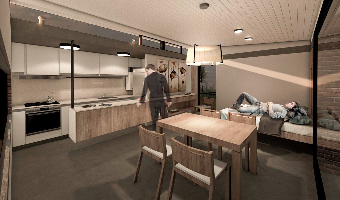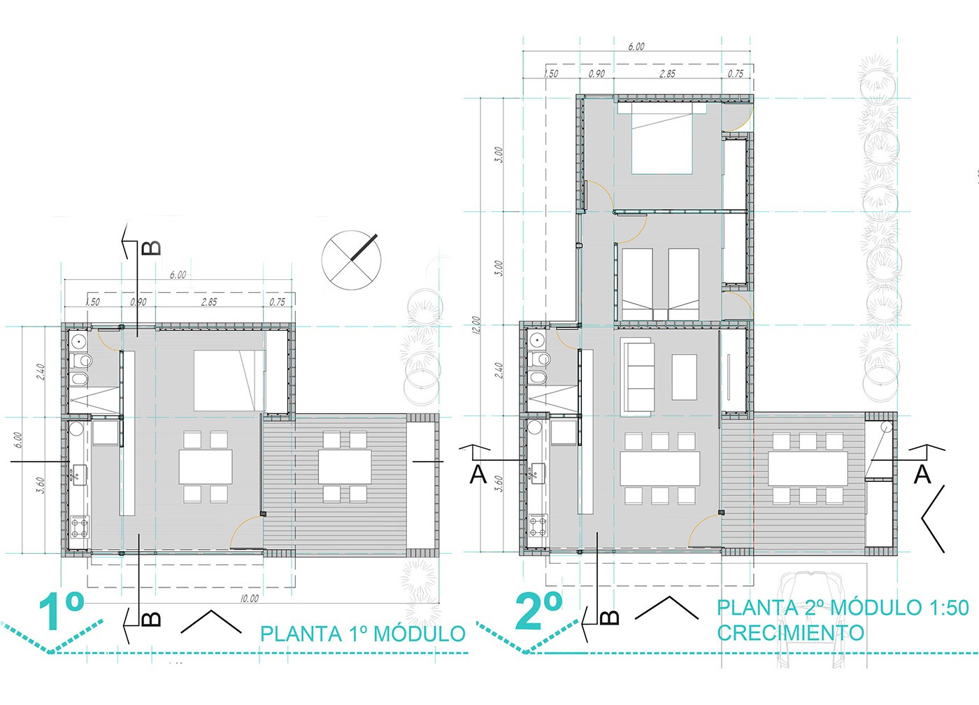 El credito PROCREAR se caracterizan por priorizar una “vivienda” flexible, adaptable y de fácil crecimiento. La propuesta inicial contiene la totalidad de las infraestructuras a futuro, propone el uso de materiales tradicionales, bajo costo de mantenimiento, flexibilidad de uso y crecimiento. Un espacio de 6m x 6m con un núcleo sanitario compacto sobre uno de sus lados deja abierta las operaciones futuras de crecimiento a 60 m2 y 90 m2.